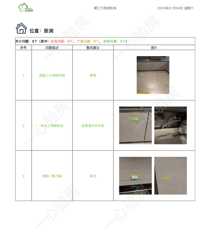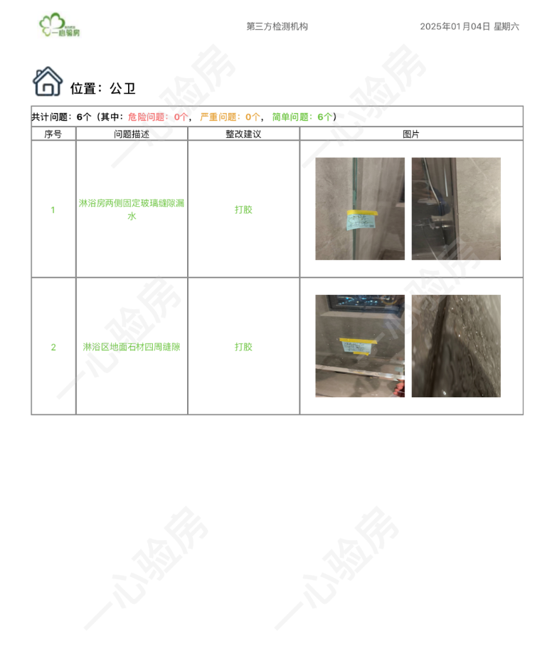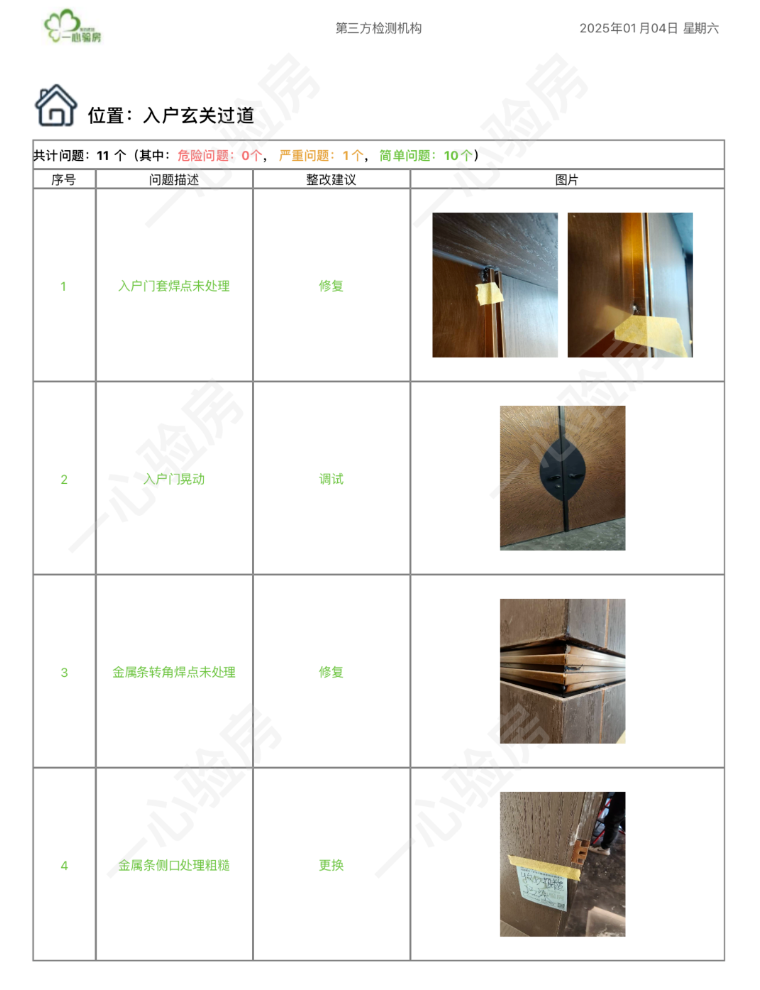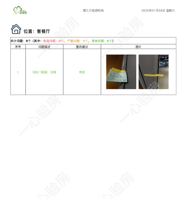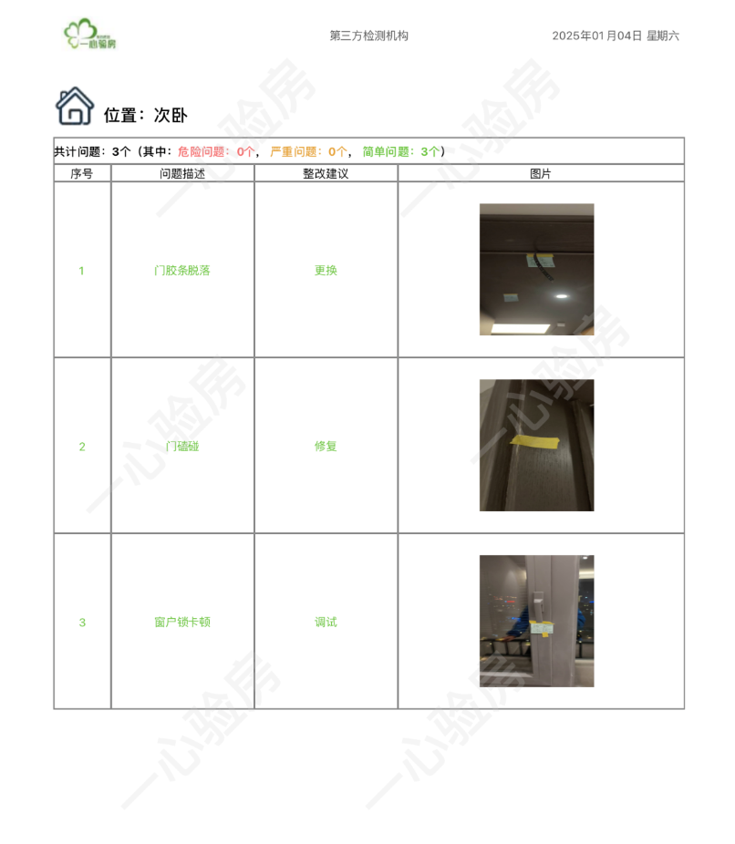 这是我们一心验房验收后罗列出频率较多、较严重的问题。每户业主,我们均会在验房结束后当天内出具验房报告,以便业主查验和相关单位进行整改。