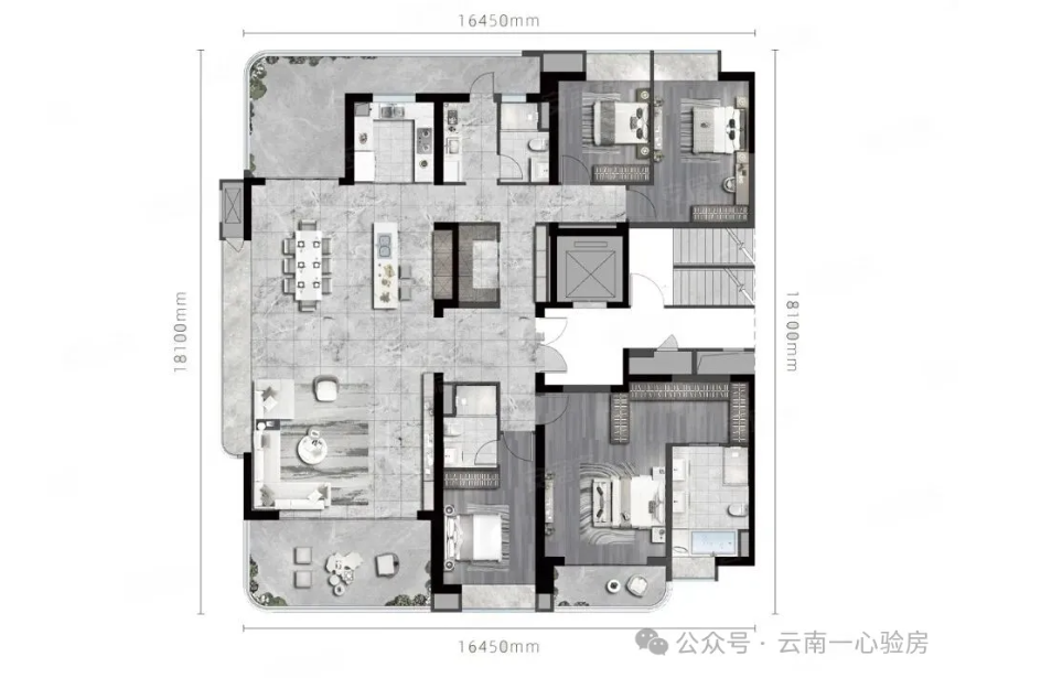 本次我们讲解验收的是建筑面积为269平米的4室2厅3卫大平层户型。该户型动静分离,加上景观阳台可达长18m的大横厅,超宽双观景阳台。