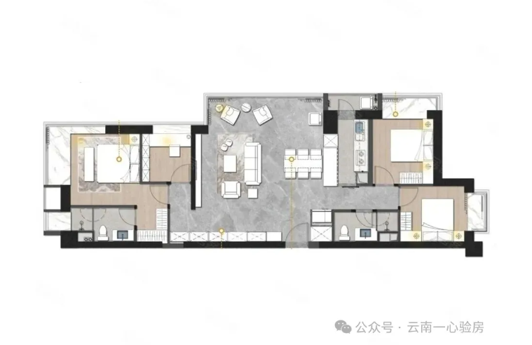 先前我们讲解的是毛坯房户型,本次我们将详细讲解验收一套建筑面积为139平米的4室2厅2卫户型,是6.2m大横厅设计,餐厅与厨房岛台相连,主卧套房、南北通透的设计。